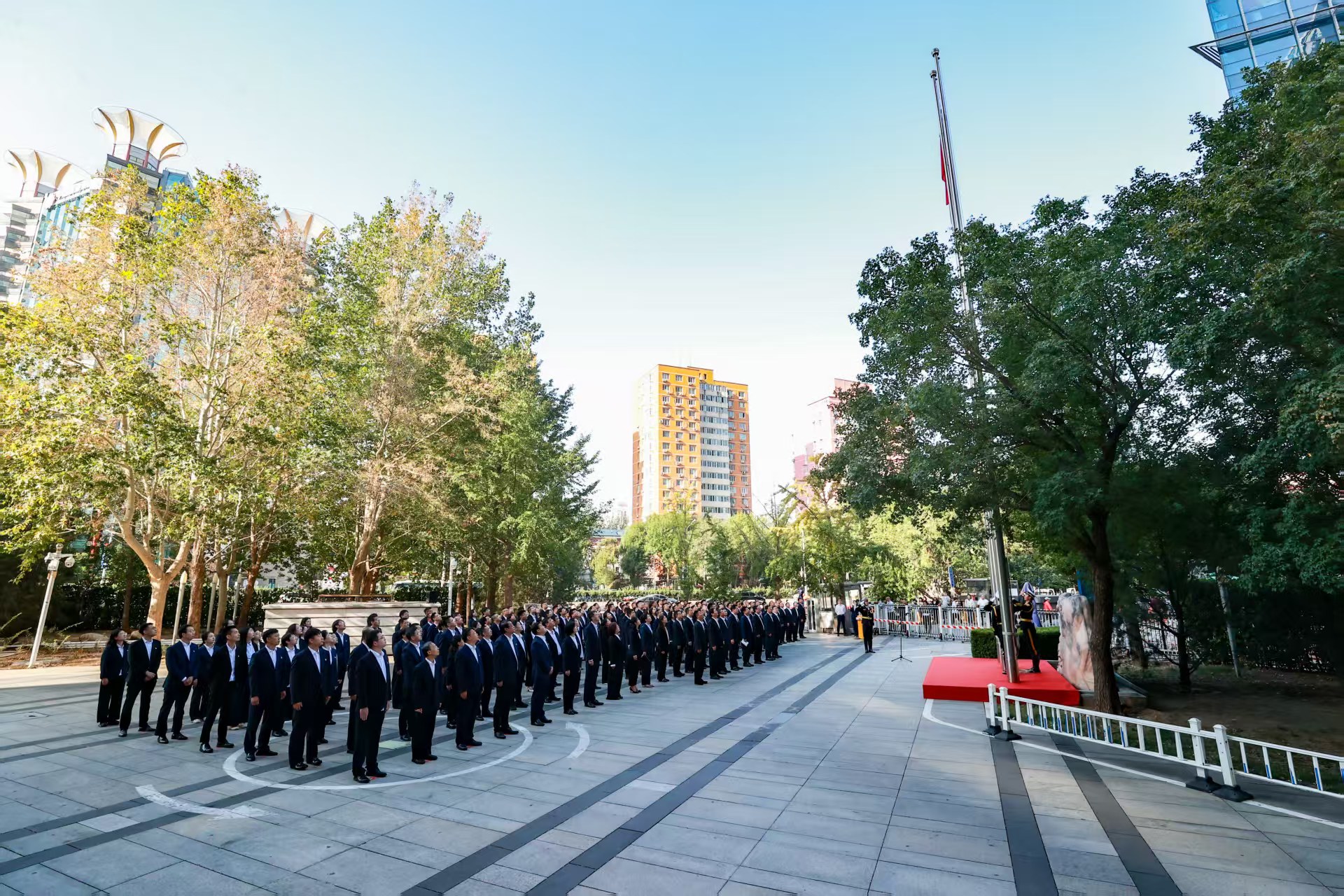 Over 200 people attended the national flag-raising ceremony, including members of the leadership teams of China MCC, cadres above the deputy division level of the headquarters, some members of the leadership teams of subsidiaries in MCC Building, and employee representatives.